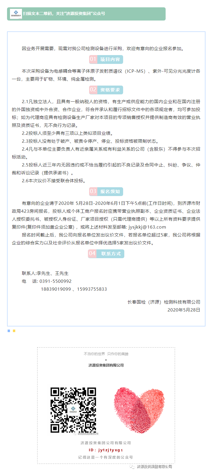 長春國檢(濟源)檢測科技有限公司采購ICP-MS、紫外可見分光光度計等檢測設(shè)備競爭性議價公告