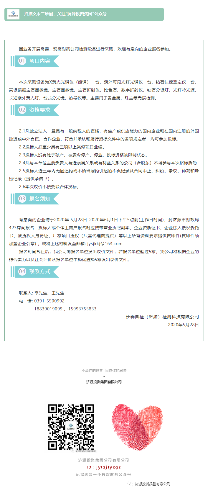 長春國檢(濟源)檢測科技有限公司采購X熒光光譜儀等貴金屬珠寶檢測設備競爭性議價公告
