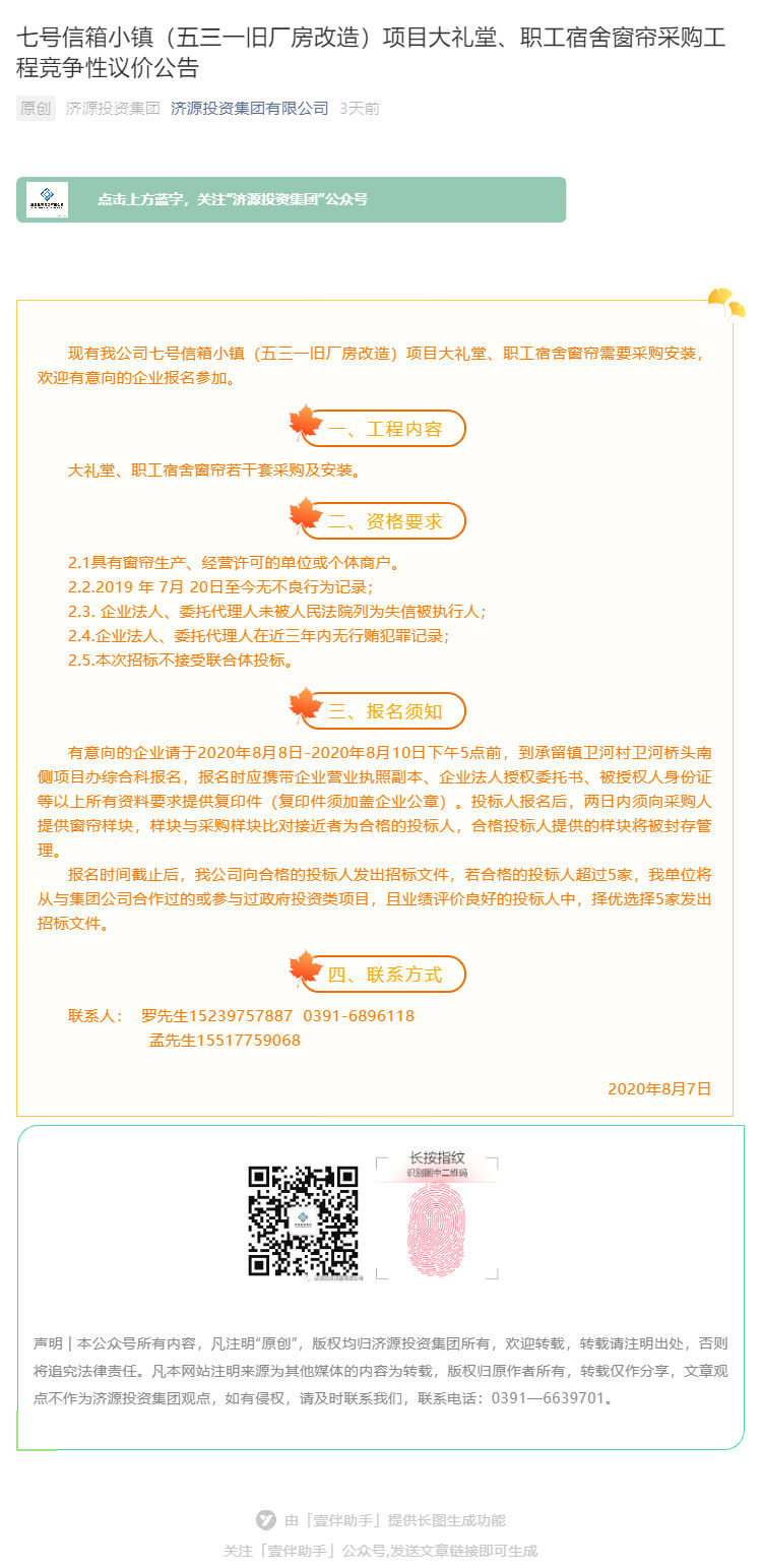七號信箱小鎮(zhèn)(五三一舊廠房改造)項目大禮堂、職工宿舍窗簾采購工程競爭性議價公告