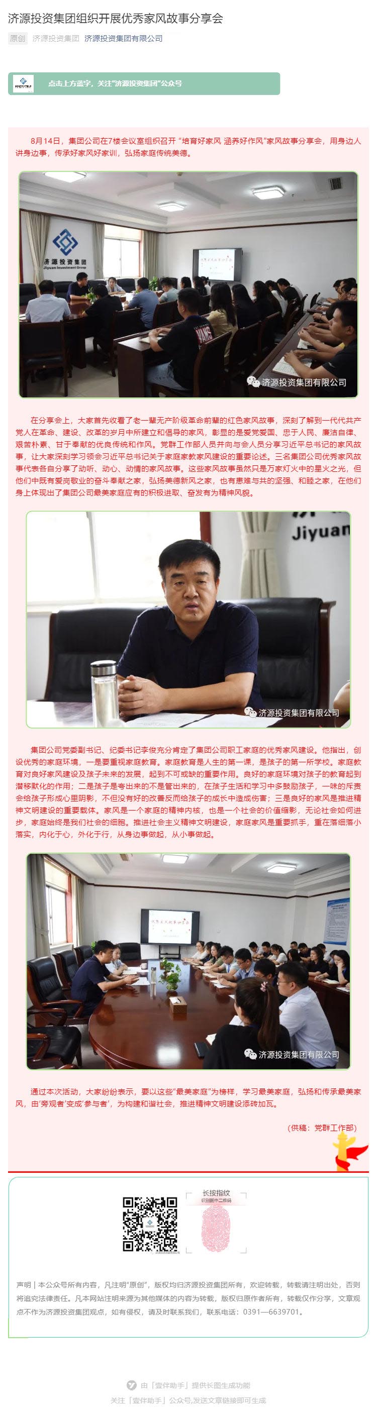 8月14日,濟(jì)源投資集團(tuán)在7樓會(huì)議室組織召開(kāi) “培育好家風(fēng) 涵養(yǎng)好作風(fēng)”家風(fēng)故事分享會(huì),用身邊人講身邊事,傳承好家風(fēng)好家訓(xùn),弘揚(yáng)家庭傳統(tǒng)美德。