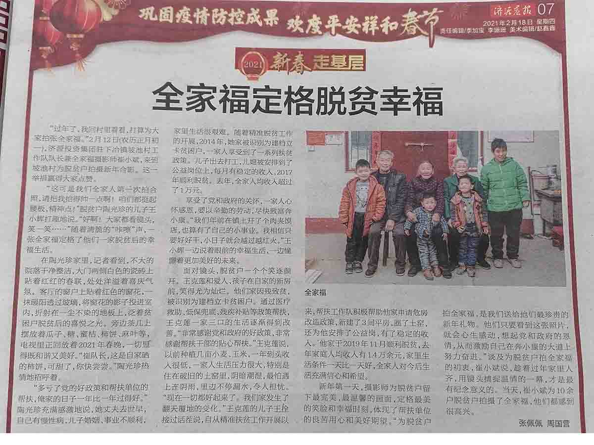 “過年了,我回村里看看,打算為大家拍張全家福。”2月12日(農歷正月初一),濟源投資集團駐下冶鎮(zhèn)坡池村工作隊隊長兼全家福攝影師崔小斌,來到坡池村為脫貧戶拍攝新年合影。這一舉措贏得大家點贊。