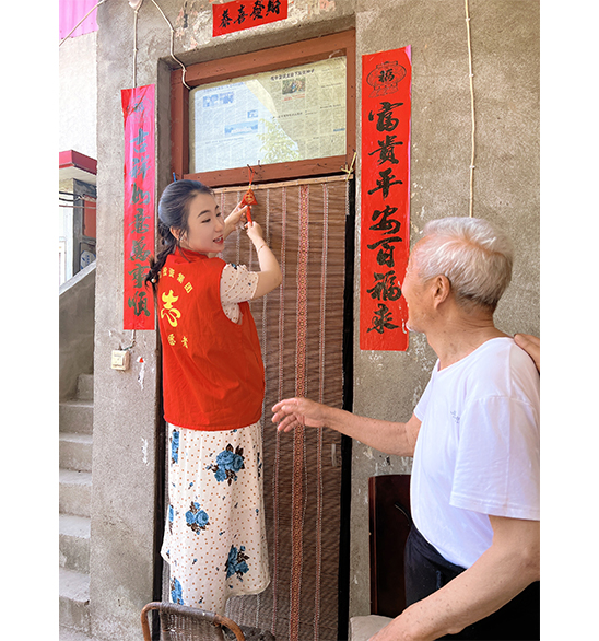 集團志愿者深入新時代文明實踐站五龍口鎮(zhèn)古楊樹村,為困難黨員、低保戶家庭送去端午慰問品,為他們懸掛端午香包,讓村民們切實感受到節(jié)日的問候。“黨的政策好?。∵@些小伙子、小姑娘人真好,真貼心……” 老人感受到“志愿紅”的溫情,由衷地說道。