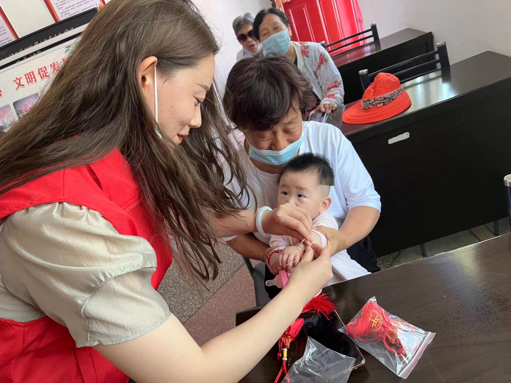 在新時代文明實踐站,黨員志愿者圍繞家風家訓、傳承良好家風的重要意義以及如何傳承良好的家風家訓等方面進行宣講,引導村民用自己的實際行動傳承優(yōu)良家風家訓,弘揚尊老敬賢美德。現(xiàn)場的“志愿紅”為村民送上端午花繩、香包紀念品。