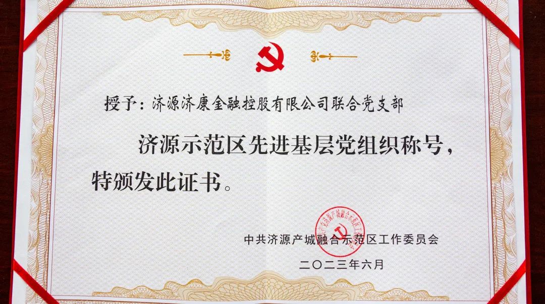 近日,濟(jì)源示范區(qū)“兩優(yōu)一先”表彰會議上,集團(tuán)公司黨委選薦的基層黨支部——中共濟(jì)源濟(jì)康金融控股有限公司聯(lián)合黨支部被授予“濟(jì)源示范區(qū)先進(jìn)基層黨組織”榮譽(yù)稱號,這既是對集團(tuán)公司黨委工作的肯定和鼓勵,也為集團(tuán)公司全體黨員干部齊心干事創(chuàng)業(yè),勠力高歌奮進(jìn)高質(zhì)量注入了新動能。