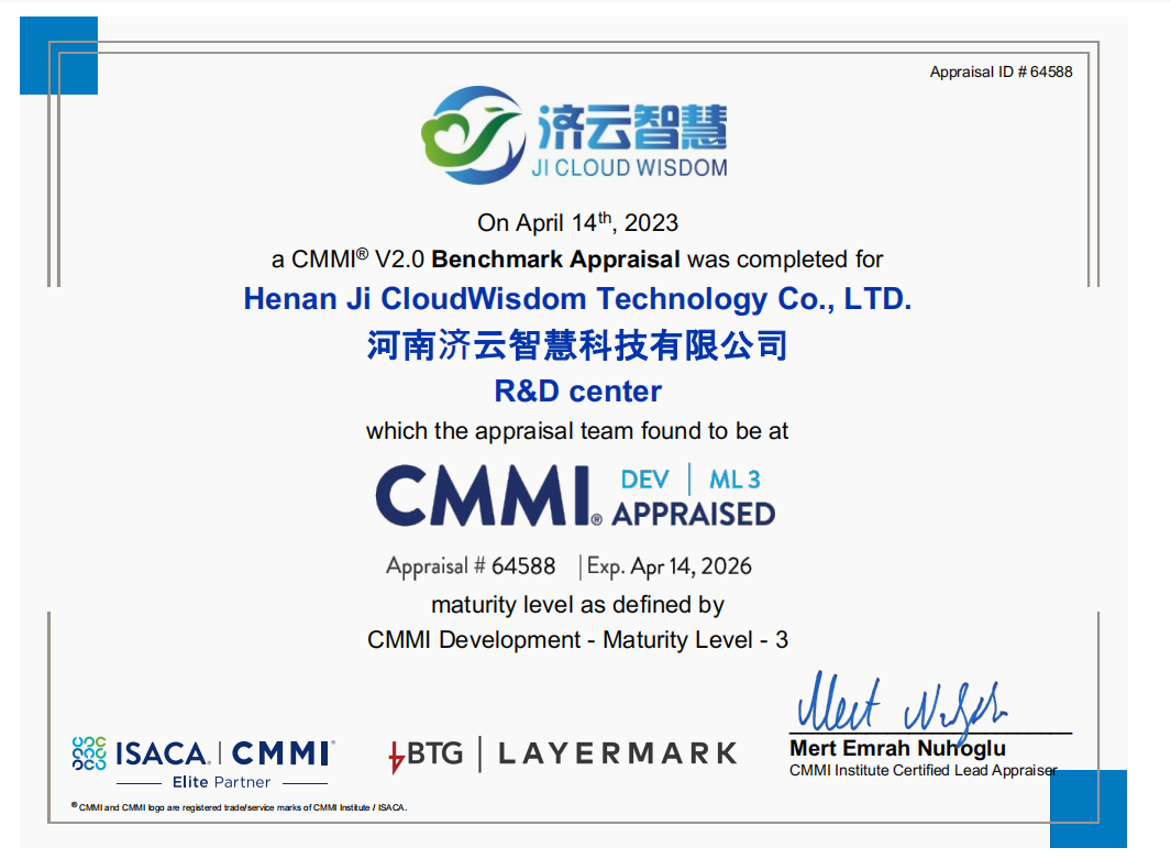 濟源投資集團所屬濟云智慧公司通過CMMI3級認證,科技創(chuàng)新力獲國際權威認可!