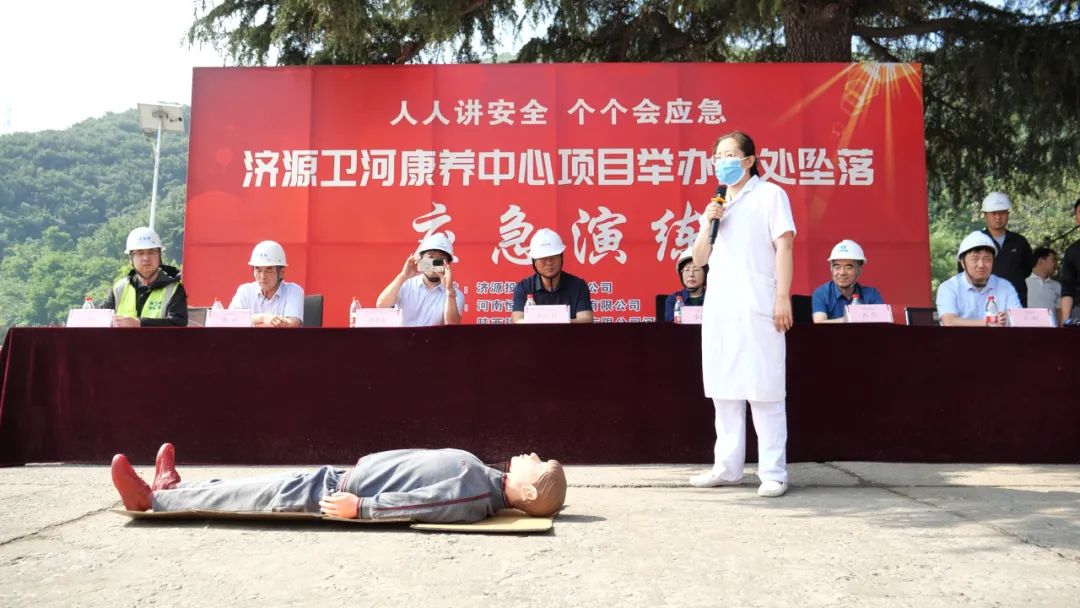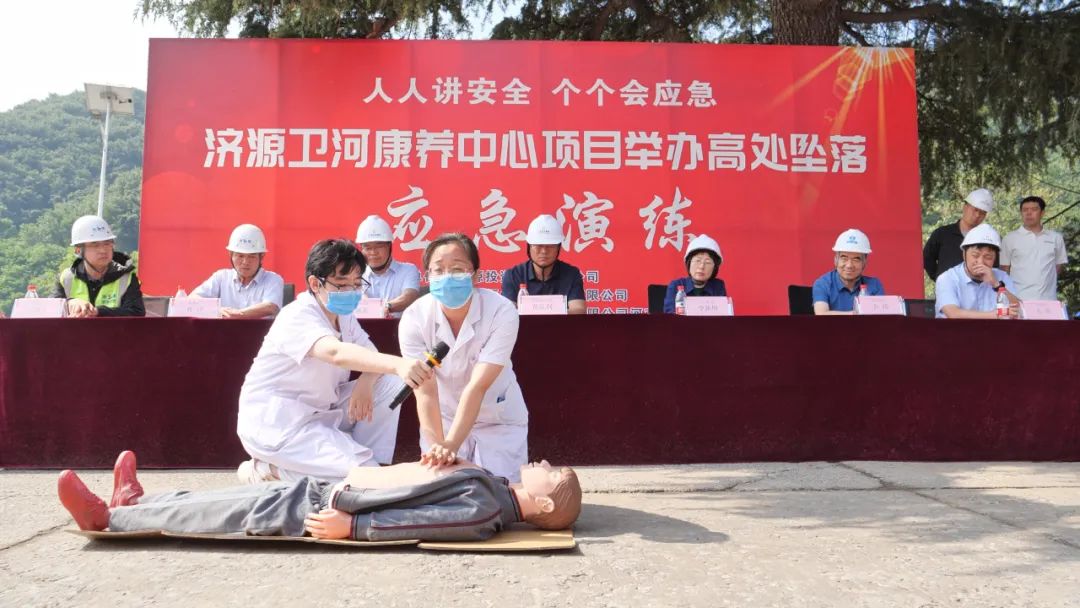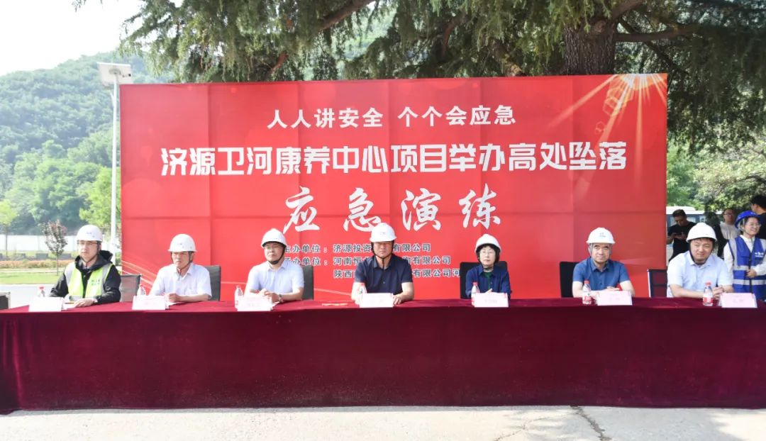 為提高施工人員的安全意識和安全技能,做好項(xiàng)目現(xiàn)場高處作業(yè)安全操作規(guī)范,實(shí)現(xiàn)項(xiàng)目建設(shè)安全生產(chǎn)“零事故”目標(biāo),5月10日,濟(jì)源市住房和城鄉(xiāng)建設(shè)局、濟(jì)源投資集團(tuán)、河南恒業(yè)建設(shè)咨詢有限公司、陜西建工安裝集團(tuán)有限公司河南分公司在濟(jì)源衛(wèi)河康養(yǎng)中心項(xiàng)目現(xiàn)場聯(lián)合舉辦高處墜落應(yīng)急救援演練活動。