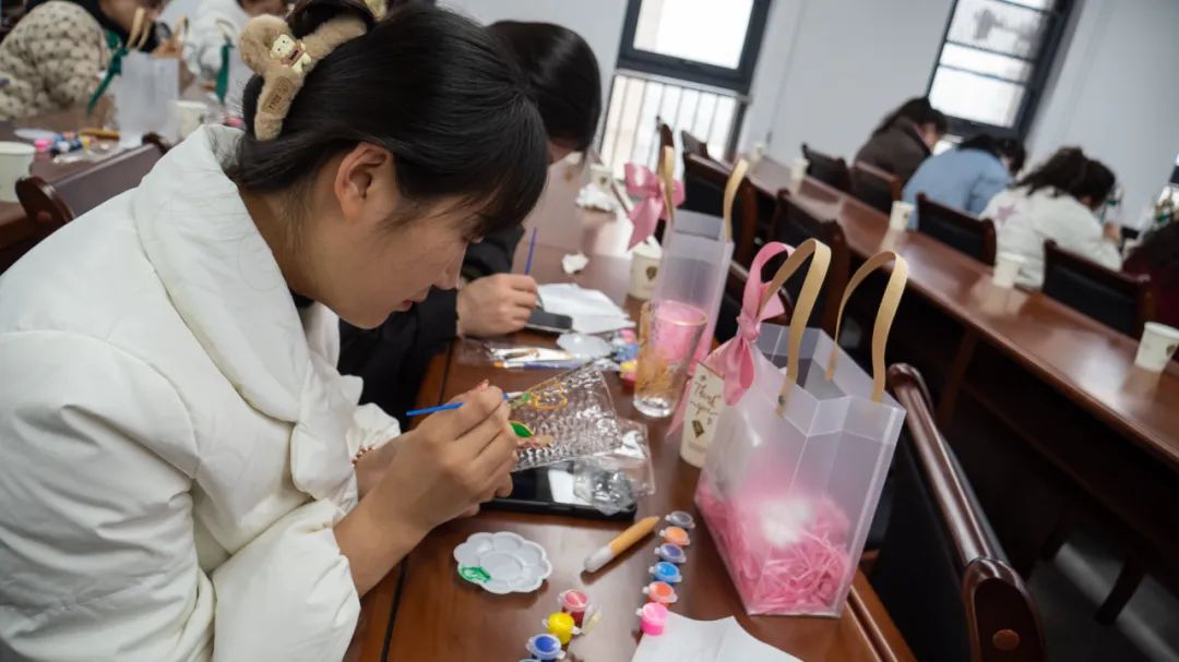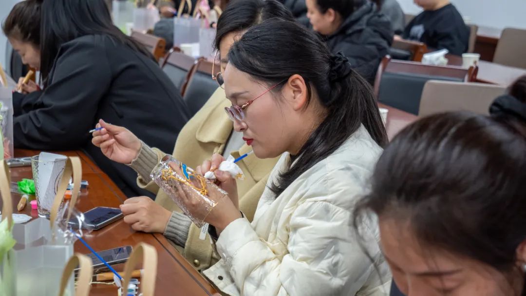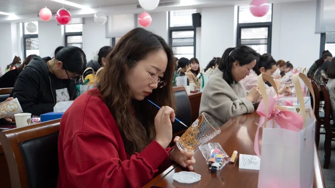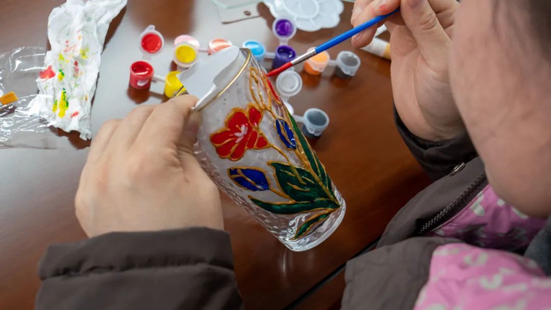 玻璃杯彩繪是近來熱門的創(chuàng)意手工活動。豐富的色彩、創(chuàng)作的專注,在放松身心、緩解壓力之余,更是能起到心靈療愈的效果?;顒又?,女職工們以晶瑩剔透的玻璃杯為畫布,用特制顏料勾勒出春日花卉、山水意境或個性圖案,每一筆都凝聚著對生活的熱愛和未來美好的期許。?