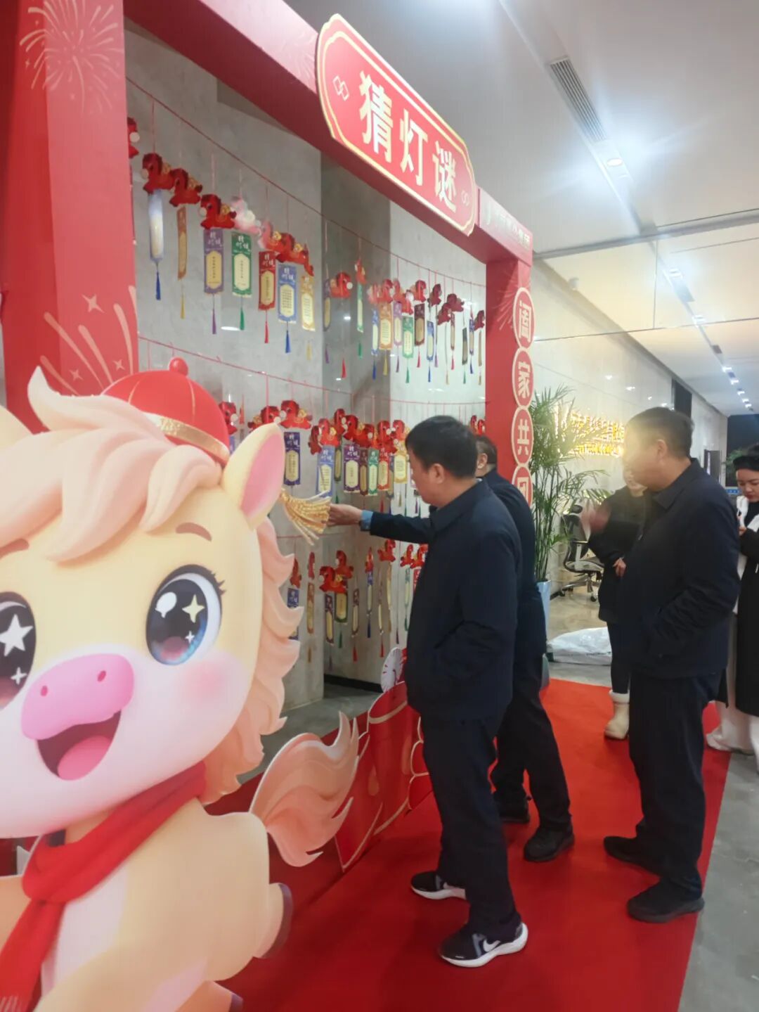燈謎競(jìng)猜區(qū)則充滿(mǎn)了文化氣息與智慧的碰撞,成為傳統(tǒng)民俗的“打卡地”。紅燈籠高高掛起,五彩燈謎隨風(fēng)搖曳,謎面涵蓋傳統(tǒng)文化、歷史典故、企業(yè)發(fā)展、生活常識(shí)、馬年新春等多個(gè)領(lǐng)域,兼具趣味性、知識(shí)性與時(shí)代感。職工們駐足沉思、相互探討,有的獨(dú)自推敲謎底,有的三五成群交流思路,猜中者興高采烈地兌換獎(jiǎng)品,未猜中者也不氣餒,繼續(xù)挑戰(zhàn)下一個(gè)謎題。一盞盞紅燈籠映照著職工們的笑臉,一條條燈謎串聯(lián)起傳統(tǒng)與現(xiàn)代,讓大家在猜謎中感受中華優(yōu)秀傳統(tǒng)文化的博大精深,也加深了對(duì)企業(yè)文化的理解。