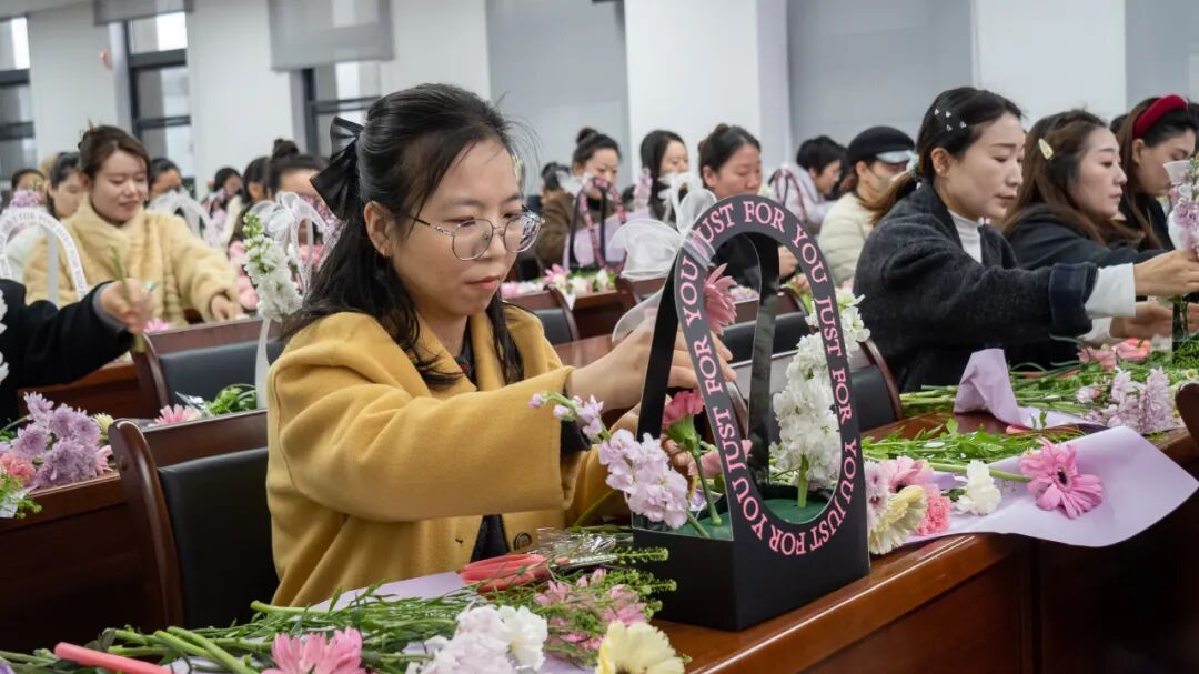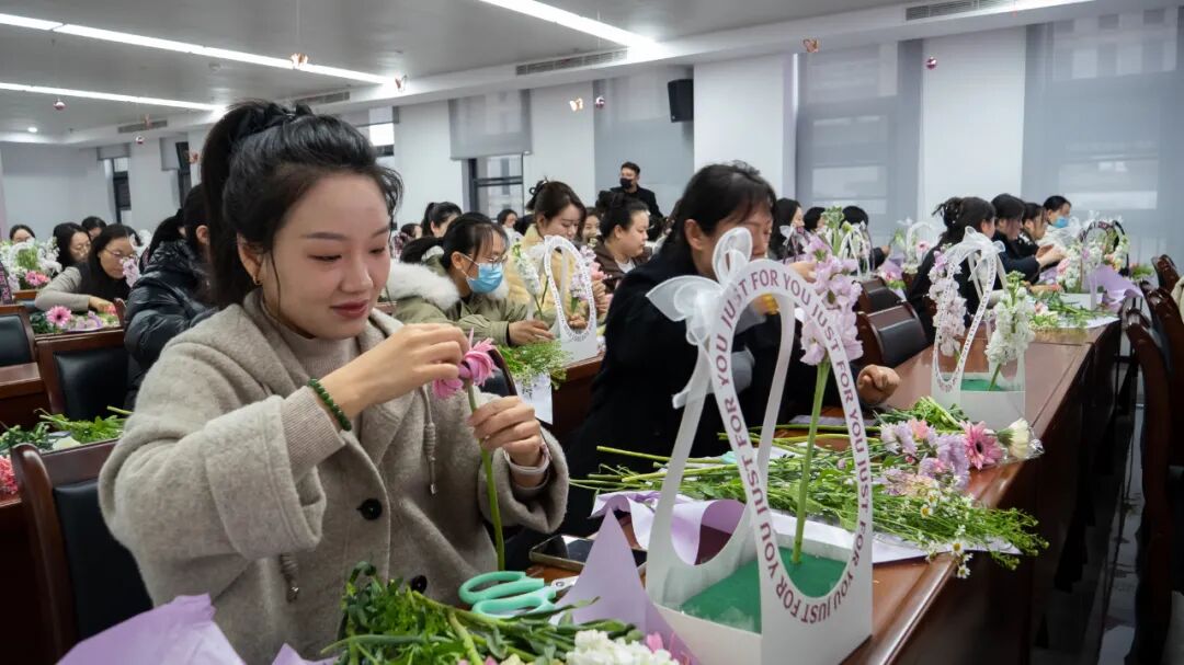 活動現(xiàn)場,集團(tuán)工會特邀專業(yè)花藝師從花卉品種、色彩搭配、插花技巧到日常養(yǎng)護(hù)等方面進(jìn)行詳細(xì)講解,并示范了創(chuàng)意花籃的制作步驟。女職工們興致盎然,在歡聲笑語中邊學(xué)邊做,精心修剪、巧妙組合,創(chuàng)作出一件件造型獨(dú)特的插花作品,在領(lǐng)略藝術(shù)魅力的同時,更是增進(jìn)了同事間的友誼。隨后,女職工們與自己的作品合影留念,紛紛表示,插花活動不僅讓我們感受到工會“娘家人”的溫暖,更在忙碌的工作中放松了身心,提升了幸福感。